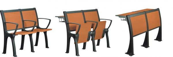 e. 内藏折叠式写字板,写字架原材料采用铝合金,写字板采用三聚氰氨板,可收藏于扶手脚内,合理利用使用空间。