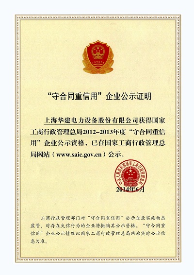 “守合同重信用”企业证书 发布时间: 2017-06-13 14:02:42 发布网站: 中国公路招标网
