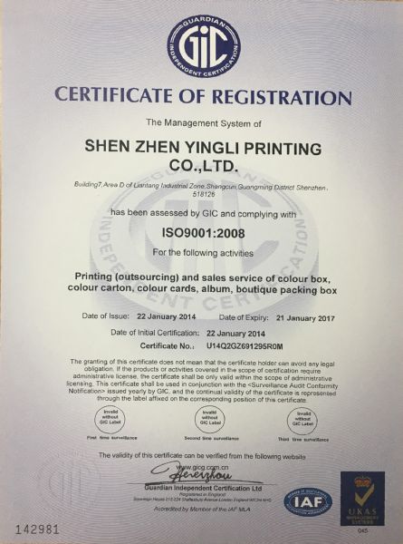 产品名称: 英利印刷ISO9001:2008英文版证书 |