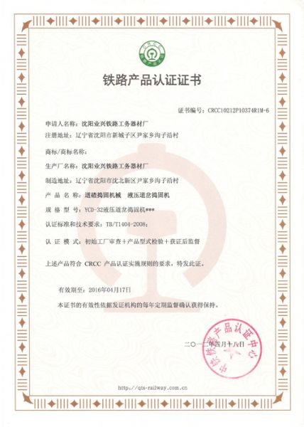 产品名称: 铁路产品认证证书7 |